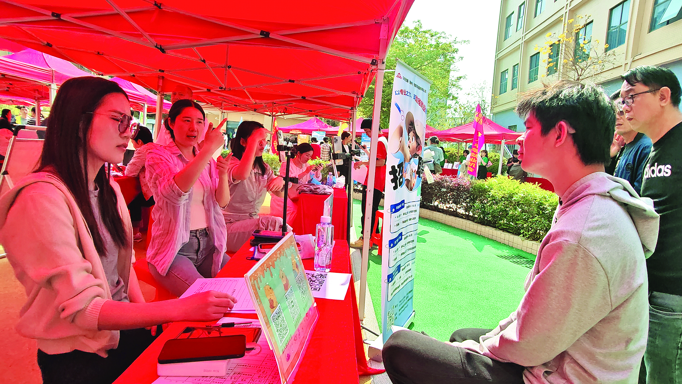 今年20歲的李偉順是一名聽(tīng)障人士,當(dāng)天在家人的陪伴下專程趕來(lái)招聘會(huì)。了解到他的訴求后,眾合創(chuàng)展(惠州)信息咨詢服務(wù)有限公司的手語(yǔ)翻譯老師立刻上前,全程用手語(yǔ)與他溝通!肮緦iT(mén)為殘疾人開(kāi)通了‘綠色通道’,不僅配備手語(yǔ)翻譯,還推出線上直播帶崗、線下專場(chǎng)招聘相結(jié)合的模式。”該企業(yè)負(fù)責(zé)人胡曉坤說(shuō)。