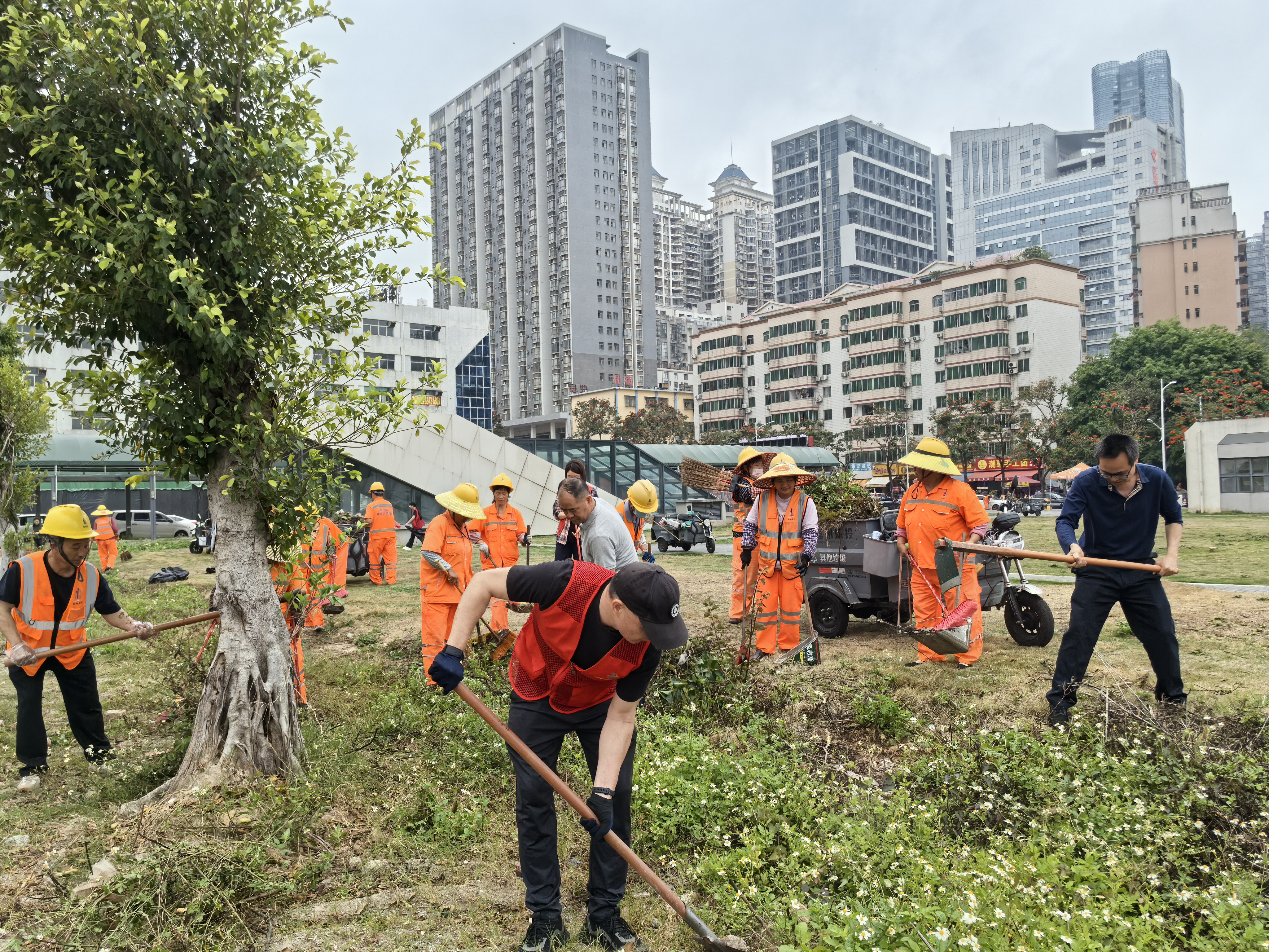 上午9時,新湖公園周邊已是一片忙碌景象。身穿紅馬甲的志愿者手拿夾子、垃圾袋,彎腰在綠化帶中仔細(xì)翻找,將隱藏在草叢中的塑料袋、飲料瓶一一撿起;環(huán)衛(wèi)工人揮舞著掃帚,將路面的落葉、雜物清掃成堆;專業(yè)消殺隊員身背噴霧器,對下水道口、垃圾桶周邊等重點區(qū)域進(jìn)行精準(zhǔn)噴灑。