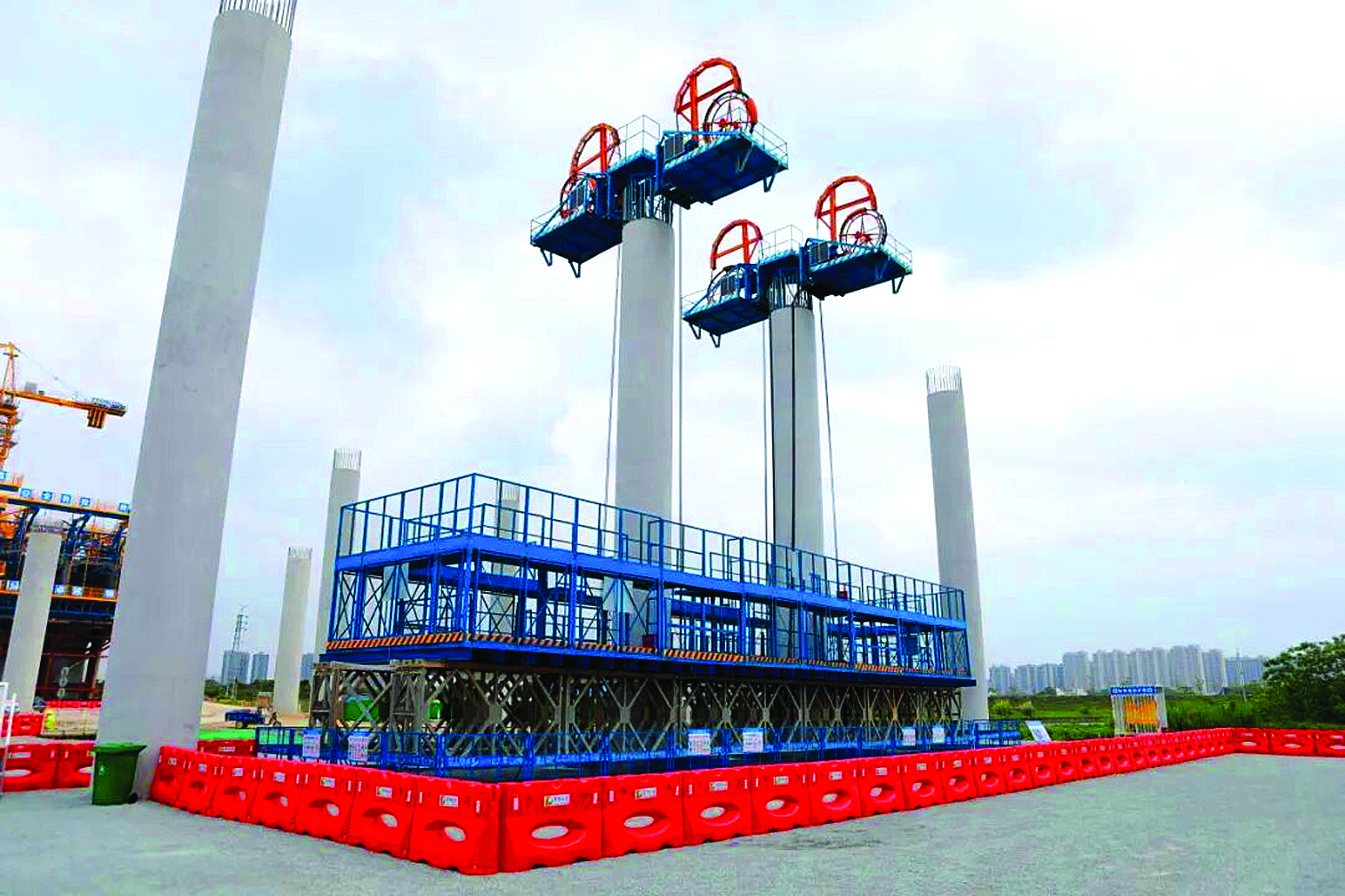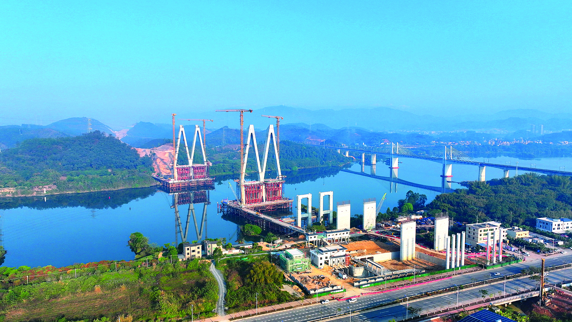 惠增高速項(xiàng)目關(guān)鍵工程東江特大橋主塔已順利封頂,正進(jìn)行01號塊支架搭設(shè)。廣東惠增高速公路有限公司提供
