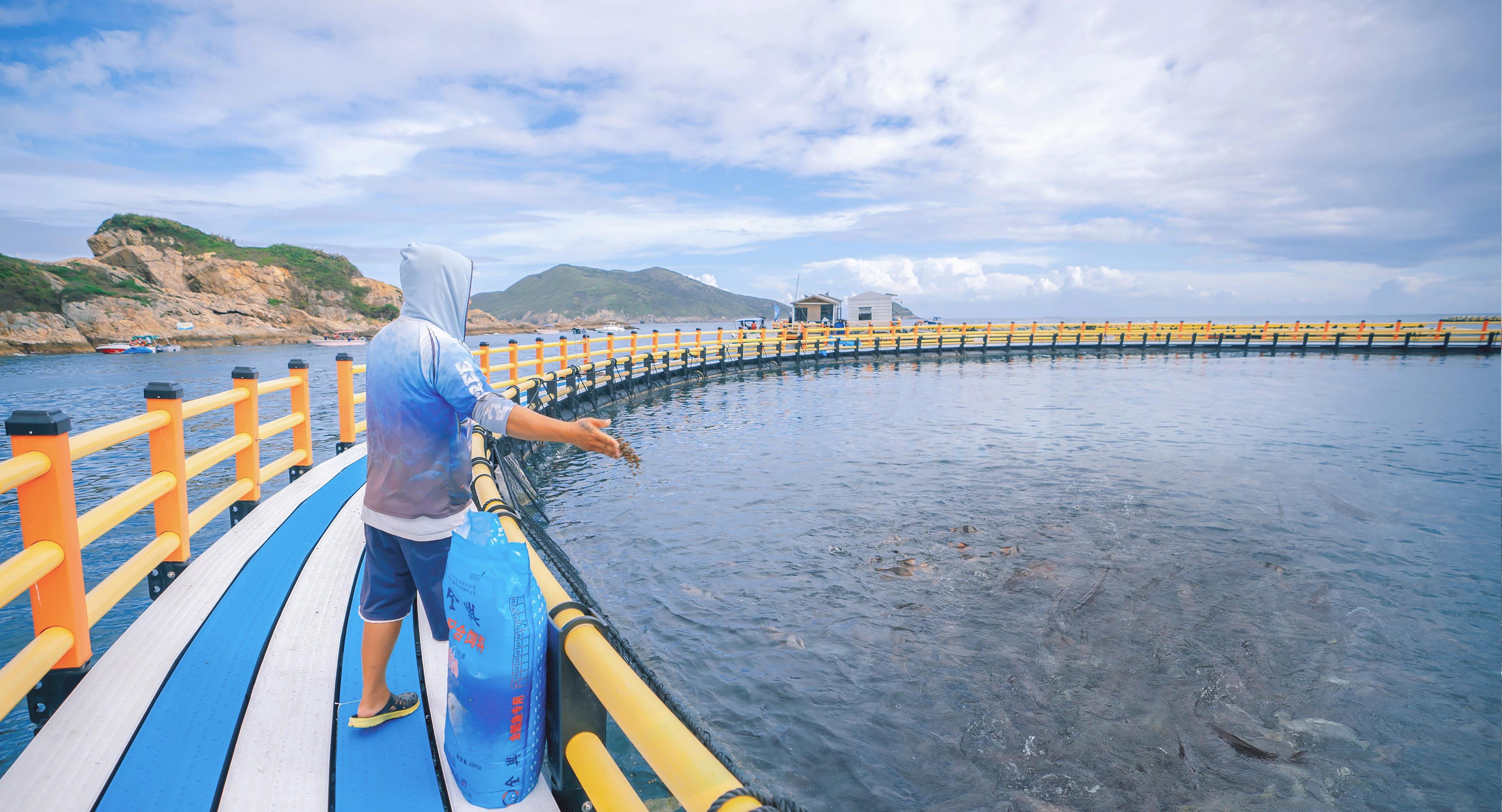 惠州積極推進現(xiàn)代化海洋牧場建設(shè)。這是一方海公司的超大型寬體HDPE深海網(wǎng)箱;葜輺|江圖片社提供