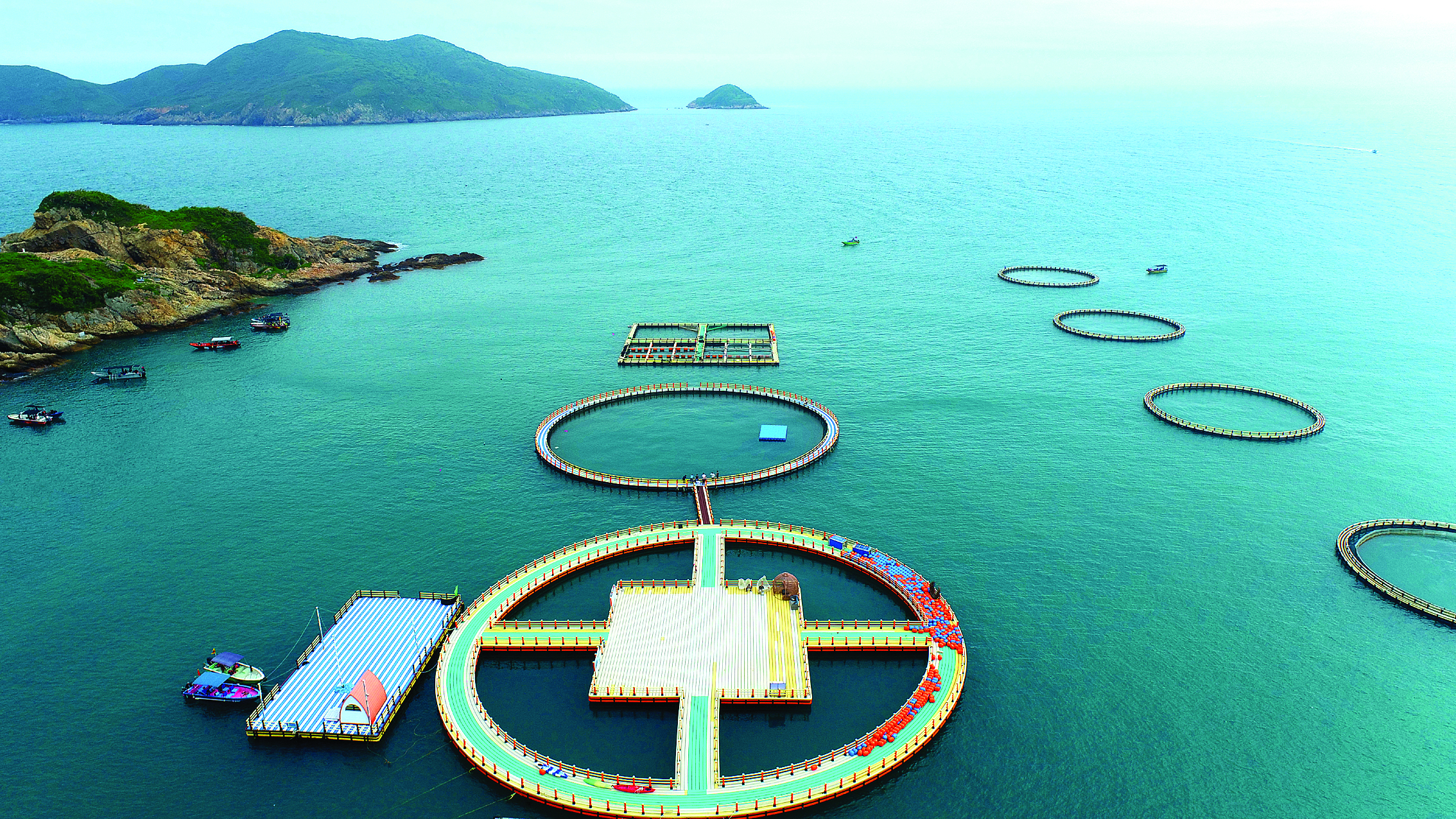 位于港口小星山附近的一方海(廣東)深海網(wǎng)箱;葜萑請笥浾邨罱I(yè) 攝