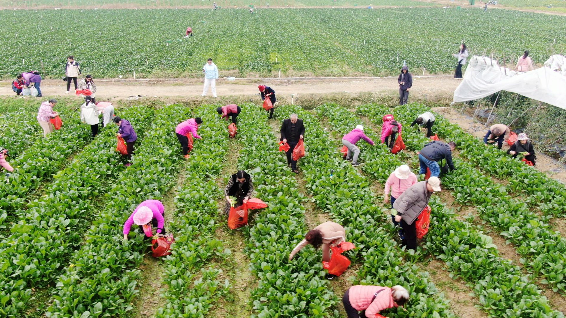在龍?zhí)镦?zhèn)鄔村村,農(nóng)戶采摘小白菜;葜萑請笥浾唿S宇翔 通訊員龍融心 攝