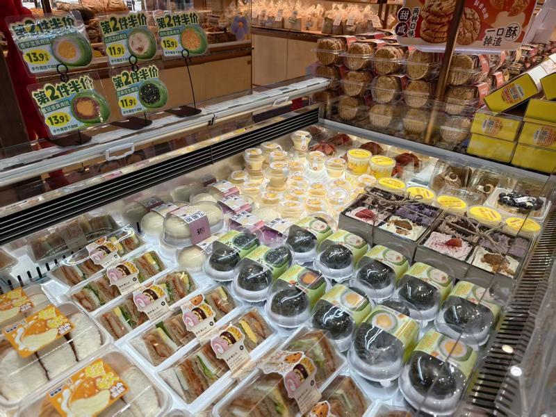 “今年我們新引進了多款青團新品,一盒4個左右,重量約200克,開袋即食,方便快捷,很受年輕消費者歡迎!蔽譅柆斏坛ぷ魅藛T介紹,目前各類清明時令美食已被擺放在顯眼位置集中展示,豐富的品類、多樣的選擇,吸引不少市民駐足選購。