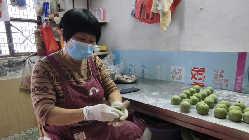 “每年清明前夕,都是艾粄、青團的銷售高峰期,每天至少制作銷售上百個,買完就收工!奔t姨告訴記者,她在南門市場擺賣糕點多年,而她制作的艾粄和青團憑借親民的價格和地道的口味,收獲了一眾老顧客的青睞。