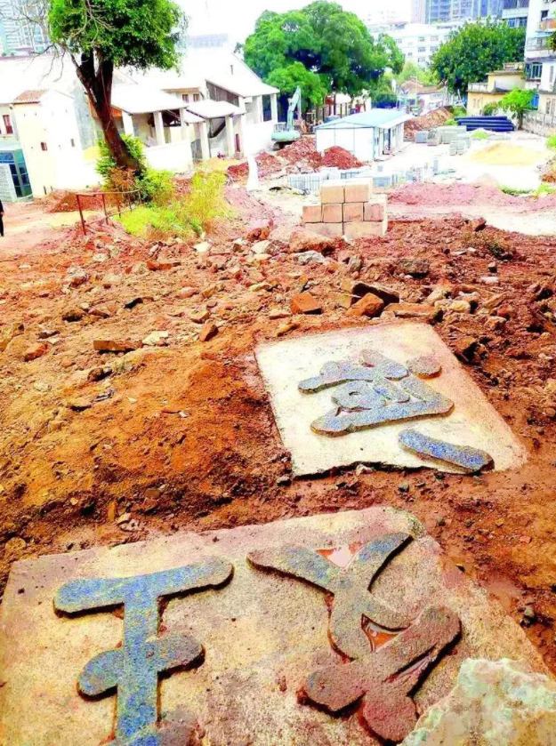橋東白鶴峰王文成公祠石匾出土時的情況;葜萑請笥浾吆羁h軍 通訊員劉漢新 攝