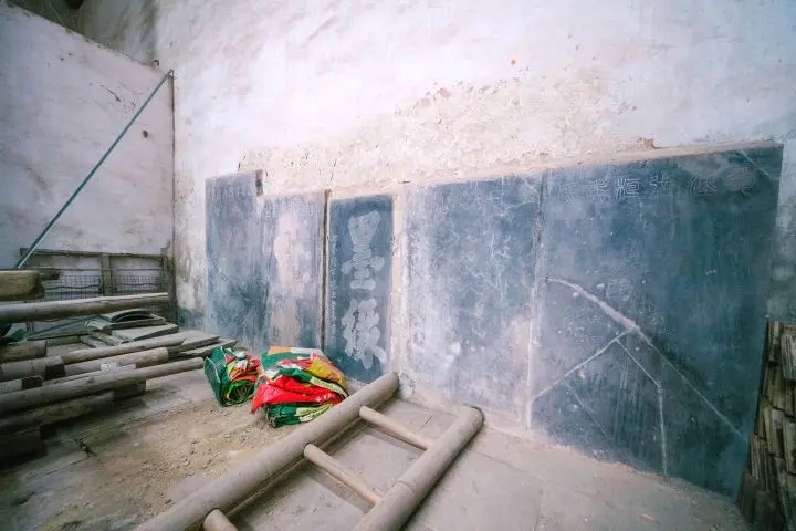 穿過梅塢拱門,能看到一座寬敞雅致的青磚瓦面建筑——小桃源。這是原來屋主張靖山的書房,門楣上鑲嵌有石刻匾額一塊,隸書橫刻“小桃源”三字,字徑10厘米,為黃燦芳于光緒二十一年(1895)所書。 小桃源內(nèi)有乾坤。室內(nèi)正面的墻壁上鑲嵌著張玉堂拳書“墨緣”,還有四塊繪像石刻,為“漢留侯張文成公像”“蜀漢張?jiān)钕瘛?“張文獻(xiàn)公像” 及“張水翰公像”,刀法嫻熟,技藝精巧,人物神態(tài)栩栩如生,標(biāo)題古篆橫書,落款楷書,記有“光緒二十二年國(guó)治敬鐫” 等字。為了保存這些殘碑,后人將它們安置在“小桃源”內(nèi)。