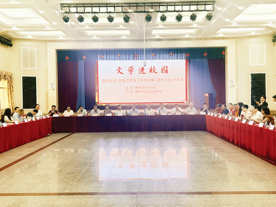 文學(xué)進校園,書香傳久遠。5月20日上午,由惠州市作協(xié)主辦的《西湖說岳》首發(fā)式暨曾志平隨筆集《澄懷觀道》分享會在惠州綜合高中舉行。