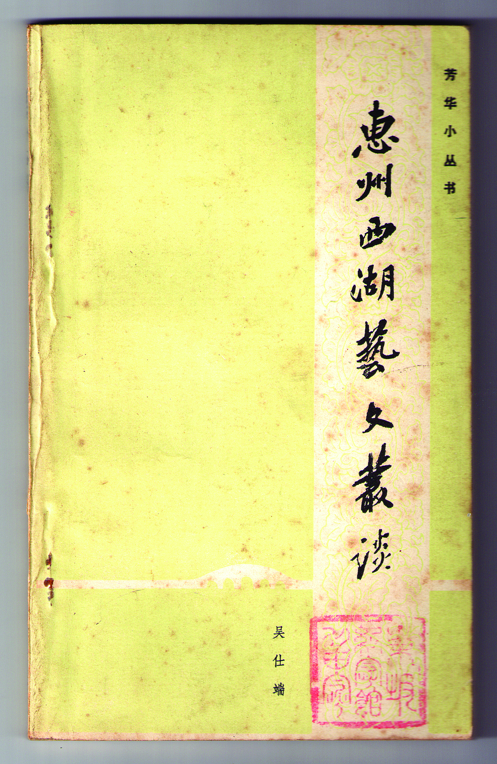 1982年冬,吳仕端著作《惠州西湖藝文叢談》初版,他在后記中說:“余世居惠州西湖,平素喜搜鄉(xiāng)邦文獻,近年養(yǎng)病在家,徇《芳華》編者之請,撰寫有關(guān)湖上藝文論述。辭不獲已,每于付稿前倉猝著筆,率爾成篇,以應(yīng)雅屬,題名曰《惠州西湖藝文叢談》。積累日久,成十余題,最近編輯同志轉(zhuǎn)述讀者意見,盼能匯輯成書。錯承過愛,遜謝不獲。爰略事整理,勉付印刷,自知淺陋,貽笑方家。深望讀者能賜教正,不勝企幸!”