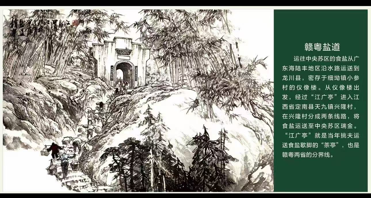 1931年,為打破敵人對中央蘇區(qū)的經(jīng)濟(jì)封鎖,地下黨組織開辟了一條贛粵食鹽運(yùn)輸線,把惠州平海、稔山以及海陸豐汕尾、捷勝、遮浪、甲子、碣石一帶的海鹽,秘密運(yùn)至江西瑞金、興國。食鹽運(yùn)輸線途經(jīng)贛粵毗鄰的兩個小山村——定南天九的興隆村、龍川細(xì)坳的小參村。兩地群眾為運(yùn)輸食鹽作出了巨大的犧牲。