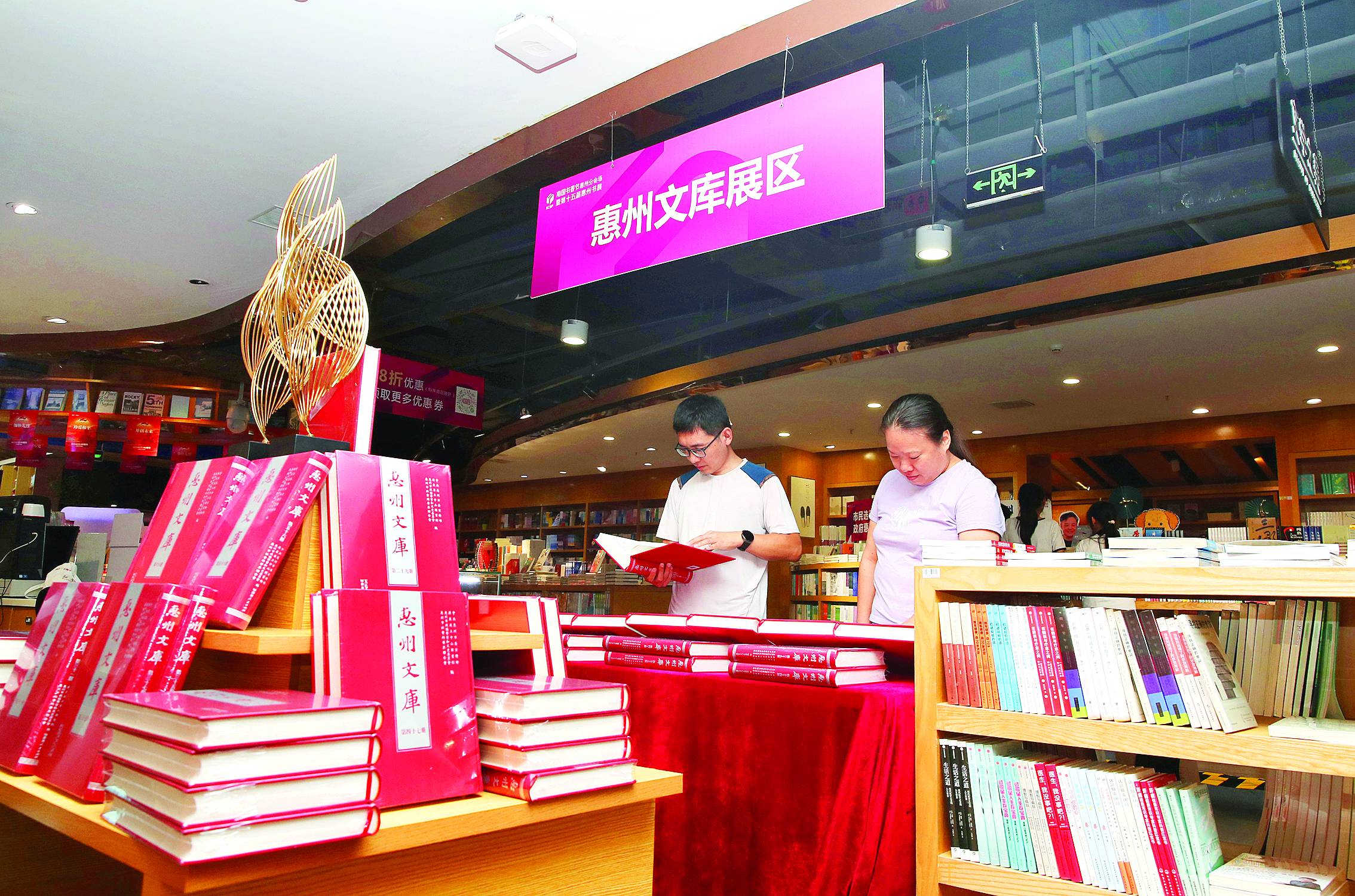 讀者在翻閱《惠州文庫》。 惠州東江圖片社供圖