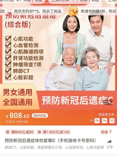 記者注意到,由于不少新冠病毒感染者擔(dān)心出現(xiàn)白肺、心肌炎或其他新冠后遺癥,包括肺部CT檢測的“陽康”體檢業(yè)務(wù)受消費(fèi)者關(guān)注。據(jù)京東健康數(shù)據(jù)顯示,近七日含肺部CT的體檢套餐環(huán)比上周成交額增長了70%。