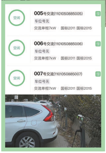再仔細(xì)看停在充電車位上的車輛就會發(fā)現(xiàn),其中1個正在充電,2個已經(jīng)充滿,另外2個則是被未充電的車輛占位。也就是說,APP上顯示的情況,與充電車位的實際狀況并不匹配。