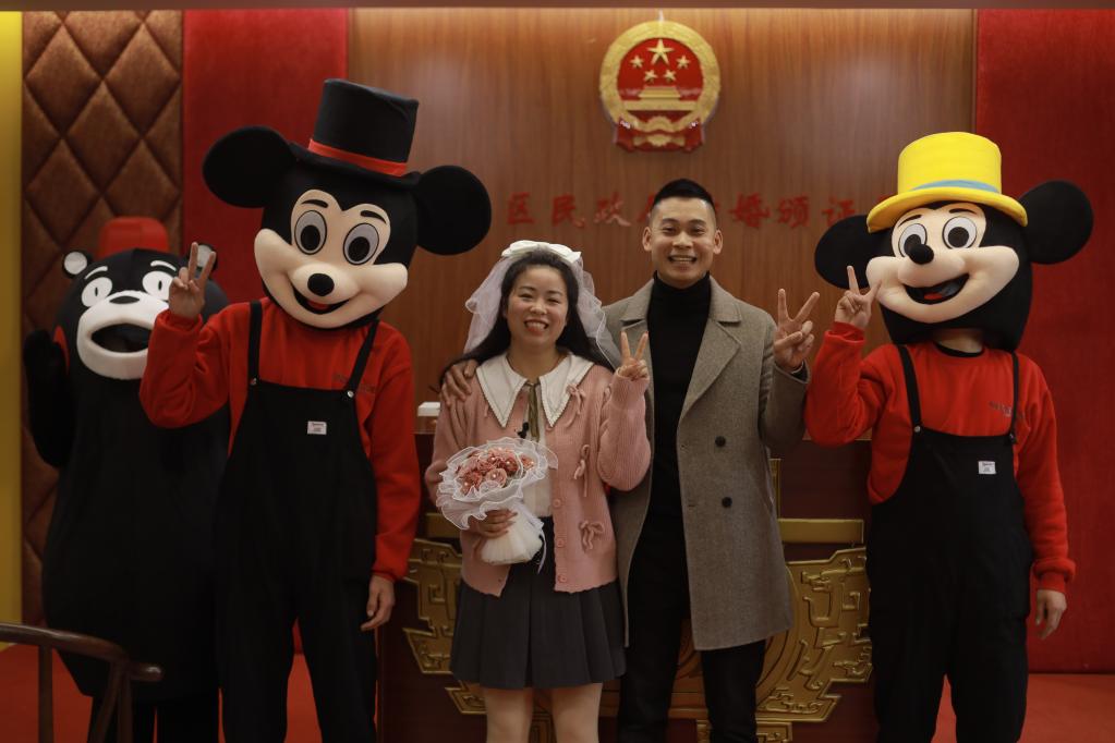 2月14日,吳樸慧和李有霖在重慶市璧山區(qū)民政局婚姻登記處領證合影。(受訪者供圖)