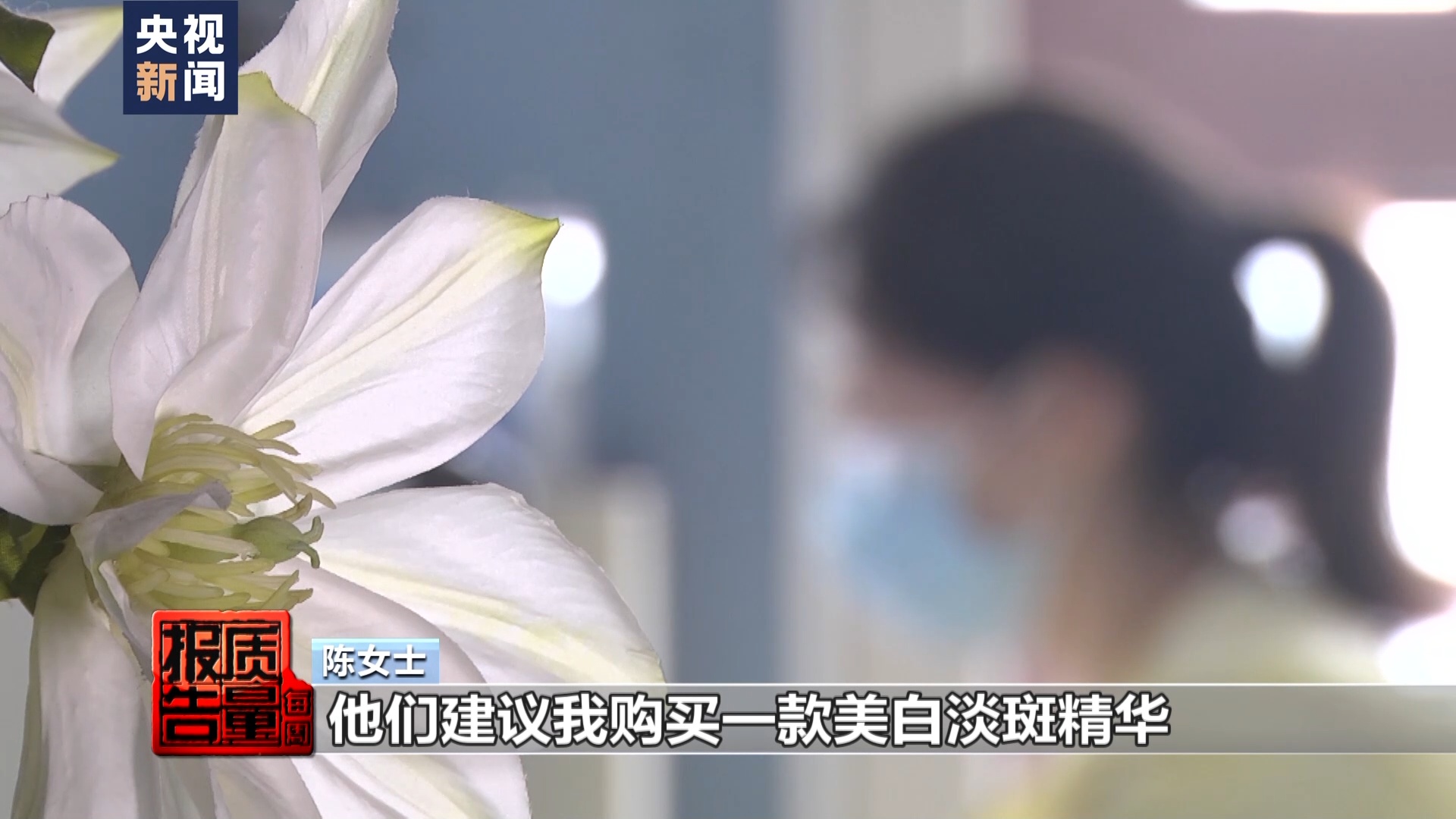 陳女士:在他們店做清潔補(bǔ)水的項(xiàng)目,他們建議我購(gòu)買一款美白淡斑的精華,說(shuō)我這個(gè)皮膚有一點(diǎn)點(diǎn)色斑,就在右邊。用他們的產(chǎn)品可以有淡斑還有預(yù)防新的斑長(zhǎng)出來(lái)的效果,而且那個(gè)產(chǎn)品他們說(shuō)是純中藥提取的,所以我當(dāng)時(shí)聽了很心動(dòng)。