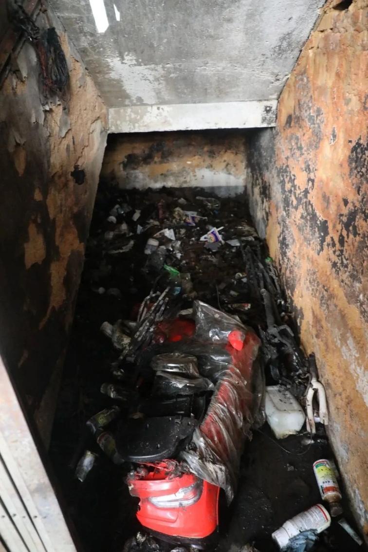 經(jīng)詢問當(dāng)事人朱某,7月7日17時許,當(dāng)事人朱某將電動自行車電池組放置在該建筑首層樓梯間內(nèi)進行“飛線”充電。18時42分許,有路人反映樓梯間起火了,朱某從四樓往下趕,到了首層樓梯間打開鐵門時看到樓梯間里面起火了,隨后拿滅火器進行滅火。
