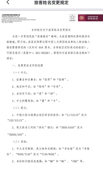 吉祥航空旅客姓名變更規(guī)定 采訪對象供圖