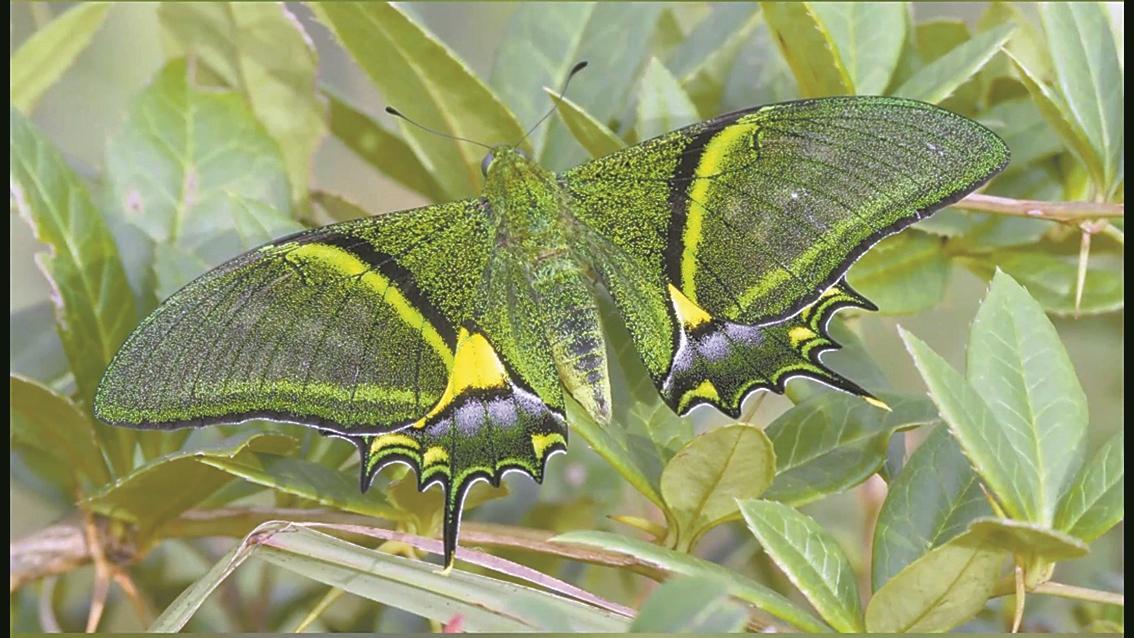 金斑喙鳳蝶屬蝶類鳳蝶科喙鳳屬,一年一般只能繁殖兩代,是中國(guó)唯一的蝶類國(guó)家一級(jí)重點(diǎn)保護(hù)野生動(dòng)物,位列世界八大名貴蝴蝶之首,有“夢(mèng)幻蝴蝶”“蝶中皇后”之美譽(yù),野外生存數(shù)量非常稀少、極罕見(jiàn),主要棲息在亞熱帶或熱帶海拔1000米左右的次原始森林中。