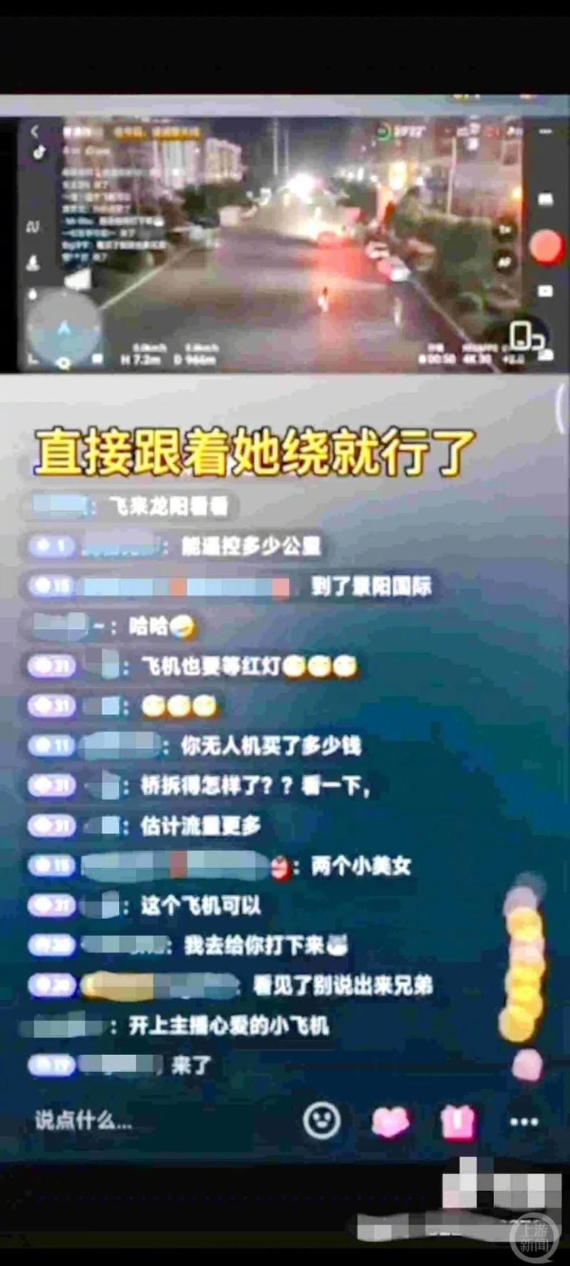 該直播視頻經(jīng)網(wǎng)友錄屏轉(zhuǎn)發(fā),引起無數(shù)網(wǎng)友公憤,大家紛紛留言:“用無人機尾隨女孩子,好恐怖,希望公安機關(guān)嚴懲。”“要是回自己家的獨居女性,被別有用心之人發(fā)現(xiàn)住址,那真是太可怕了”“尾隨他人還開直播造謠,真是嚇人!”