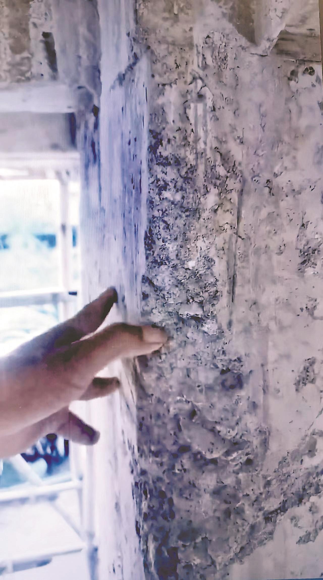 10月2日,許先生告訴記者,現(xiàn)在房梁開(kāi)始開(kāi)裂,樓梯口的柱子情況尤為嚴(yán)重,輕輕敲打就會(huì)碎爛,“目前就此事已報(bào)警”。