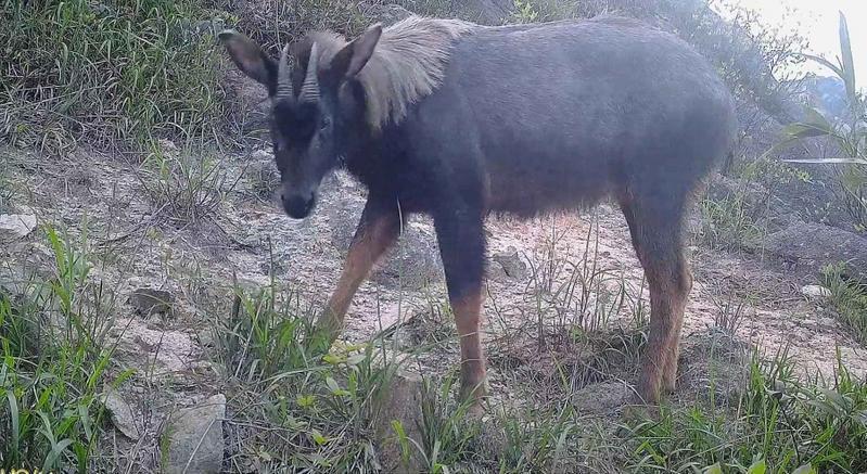 中華鬣羚是國家二級保護(hù)野生動物,主要棲息在針闊混交林、針葉林或多巖石的雜灌林,單獨(dú)或成小群生活,多在早晨和黃昏活動,行動敏捷,善于在險崖上跳躍。它的角像鹿不是鹿、蹄像牛不是牛、頭像羊不是羊、尾像驢不是驢,因此也被稱為“四不像”。