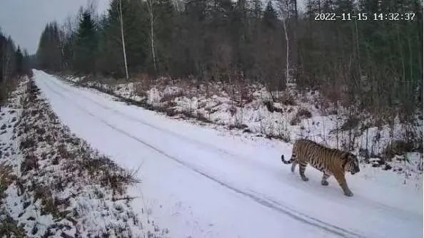 2022年11月15日14時,在伊春市豐林縣五營林業(yè)局有限公司永豐林場分公司,一處監(jiān)控設(shè)備拍攝到東北虎。東北林業(yè)大學(xué)貓科動物研究中心對足跡進(jìn)行了鑒定,認(rèn)定為野生東北虎。