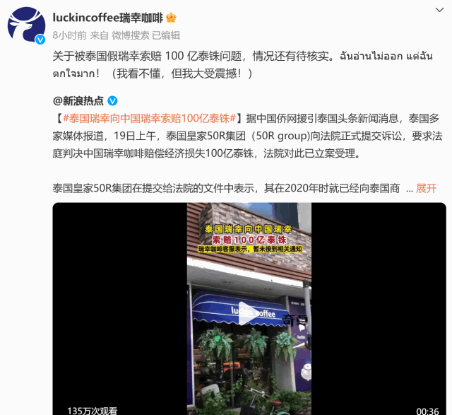 12月20日,瑞幸咖啡官方微博就19日泰國知識產(chǎn)權(quán)和國際貿(mào)易中央法庭審判一事,發(fā)布消息回應(yīng)稱,關(guān)于被泰國假瑞幸索賠100億泰銖問題,情況還有待核實。