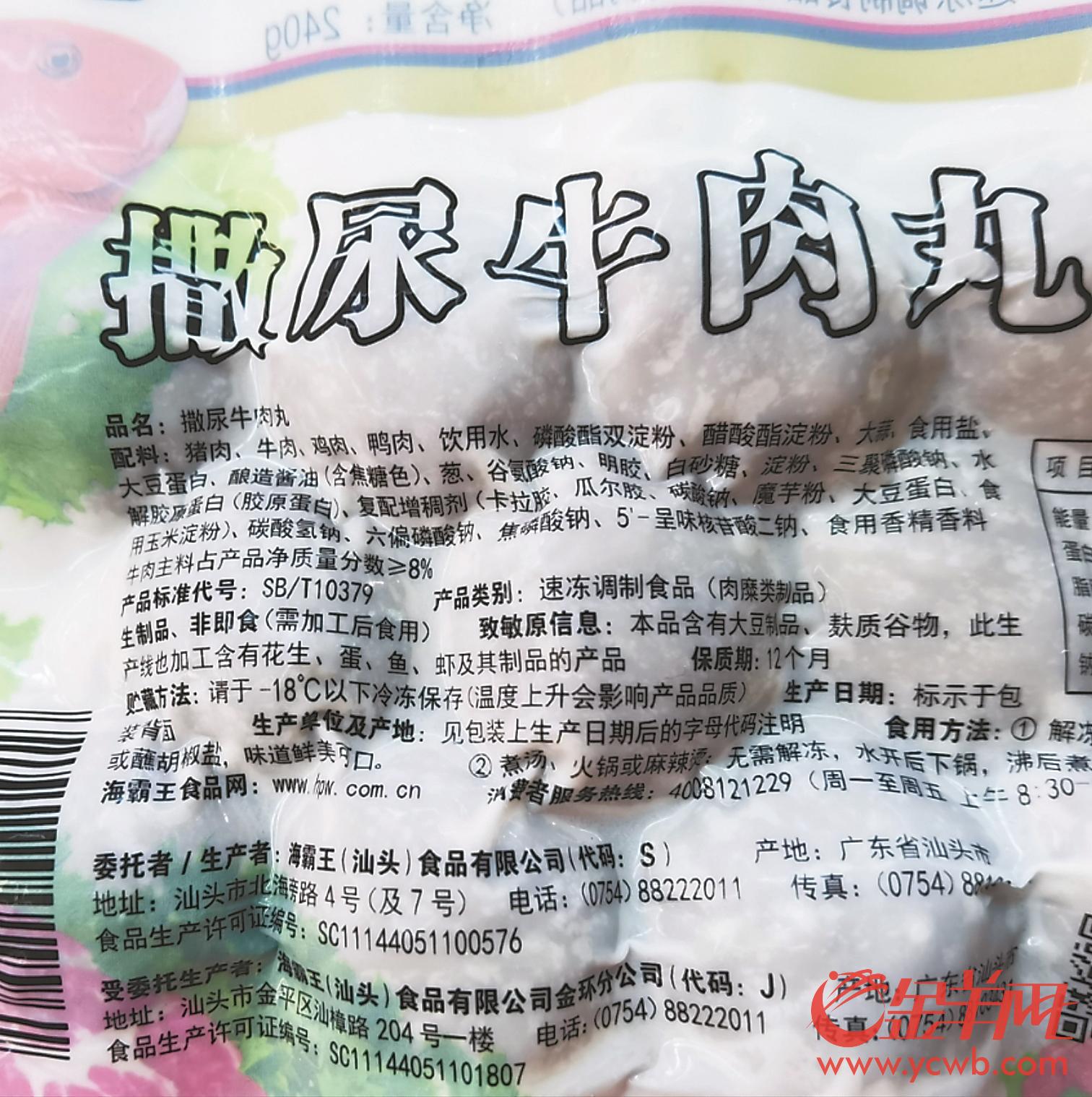 關(guān)于食品名稱問題,《通則》指出,應(yīng)在食品標(biāo)簽的醒目位置,清晰地標(biāo)示反映食品真實屬性的專用名稱。“如果不仔細(xì)看真的不知道里面還有這些門道,既然豬肉成分排在第一位,應(yīng)該叫撒尿豬肉丸。”一位正在購買火鍋食材的消費者對海霸王撒尿牛肉丸提出質(zhì)疑。