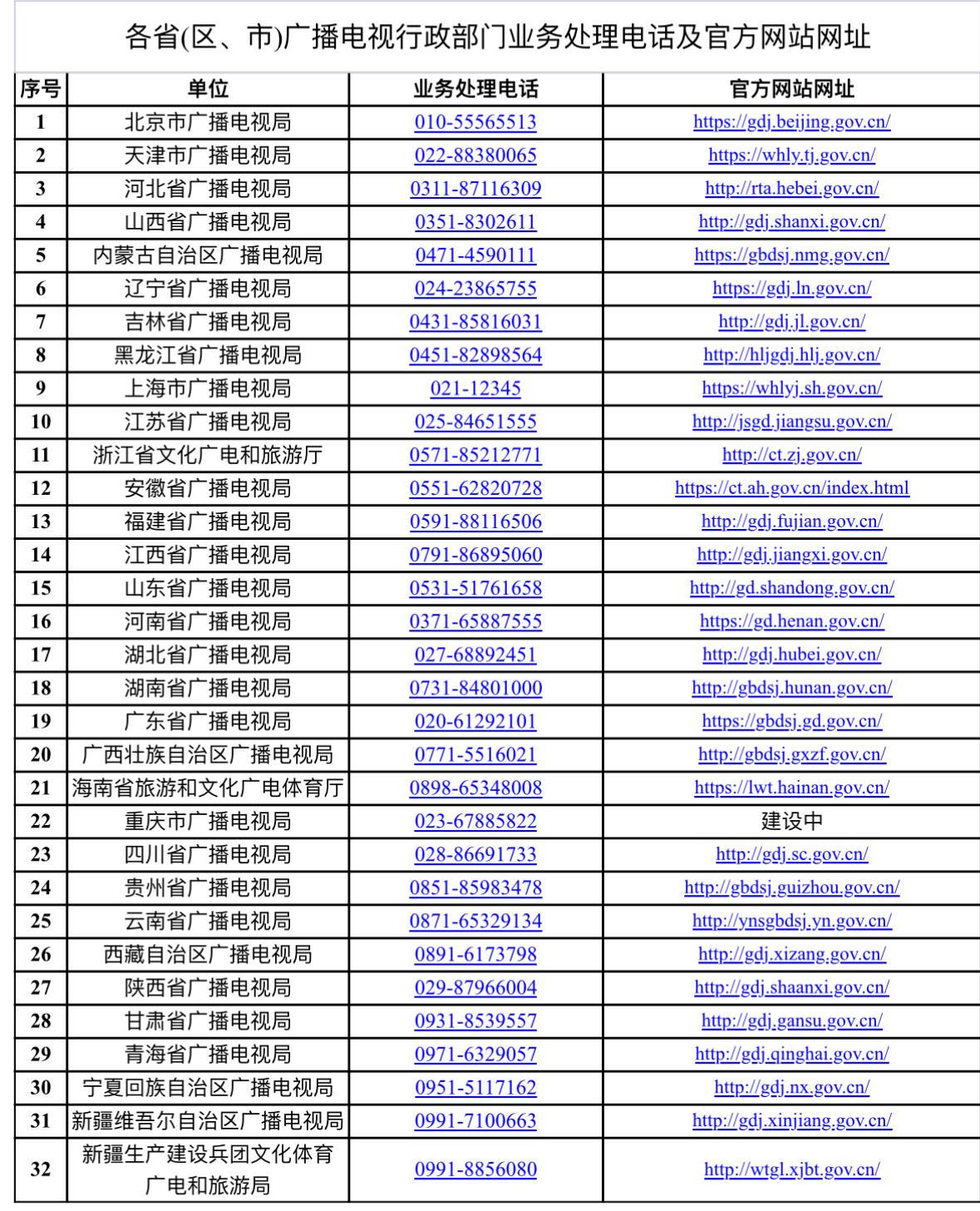 1.所在省(區(qū)、市)廣播電視行政部門業(yè)務(wù)處理電話,以及官方網(wǎng)站等線上渠道(見(jiàn)附表);