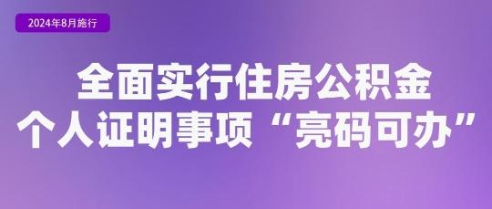 《住房城鄉(xiāng)建設(shè)部辦公廳關(guān)于整合住房公積金個人證明事項推動“亮碼可辦”工作的通知》提出,依托全國住房公積金小程序和全國住房公積金監(jiān)管服務(wù)平臺,在住房公積金繳存人申請開具職工繳存證明、異地貸款繳存使用證明、貸款結(jié)清證明等個人證明時,向其提供實時在線開具、后臺自動查驗等服務(wù),以統(tǒng)一“電子碼”代替原有3項紙質(zhì)證明,實現(xiàn)住房公積金個人證明事項“亮碼可辦”。2024年8月起,全面實行住房公積金個人證明事項“亮碼可辦”。