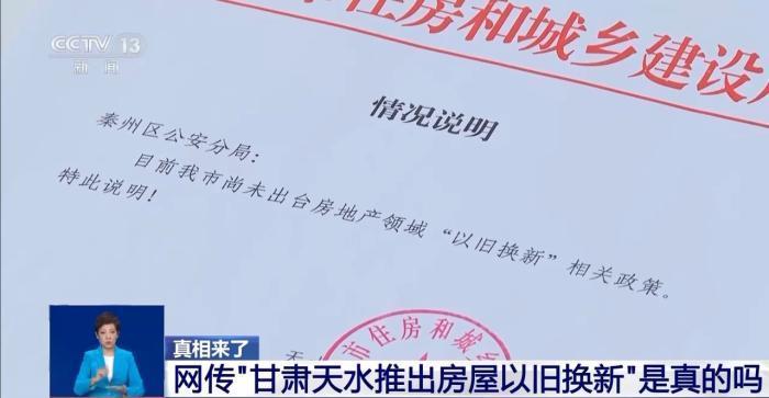 為了進(jìn)一步查證這條視頻內(nèi)容的真假,民警來到天水市住房和城鄉(xiāng)建設(shè)局進(jìn)行詢問,工作人員給出了明確答復(fù),那就是天水市尚未出臺(tái)房地產(chǎn)領(lǐng)域“以舊換新”相關(guān)政策。