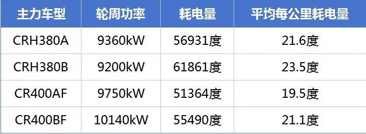 “中國高鐵動車組一公里耗一萬度電”的說法偷換了概念,與事實不符。以現(xiàn)有CRH380A、CRH380B、CR400AF、CR400BF等4個8編組的主力車型為例,其輪周功率分別為:9360kW、9200kW、9750kW、10140kW,通過在京滬高鐵(往返距離2636公里)達(dá)速350km/h運行條件下的能耗測試數(shù)據(jù)顯示,其耗電量分別為:56931度、61861度、51364度、55490度,據(jù)此推算出平均每公里耗電量分別為:21.6度、23.5度、19.5度、21.1度。