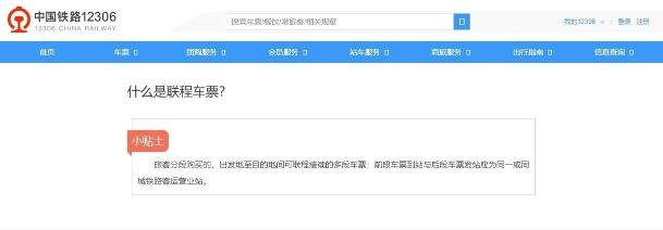 12306官網(wǎng)對聯(lián)程車票的解釋(官網(wǎng)截圖)