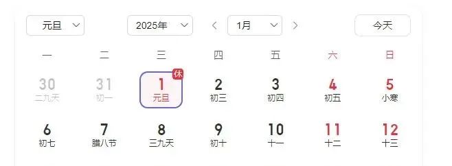 2025年元旦恰好在周中,