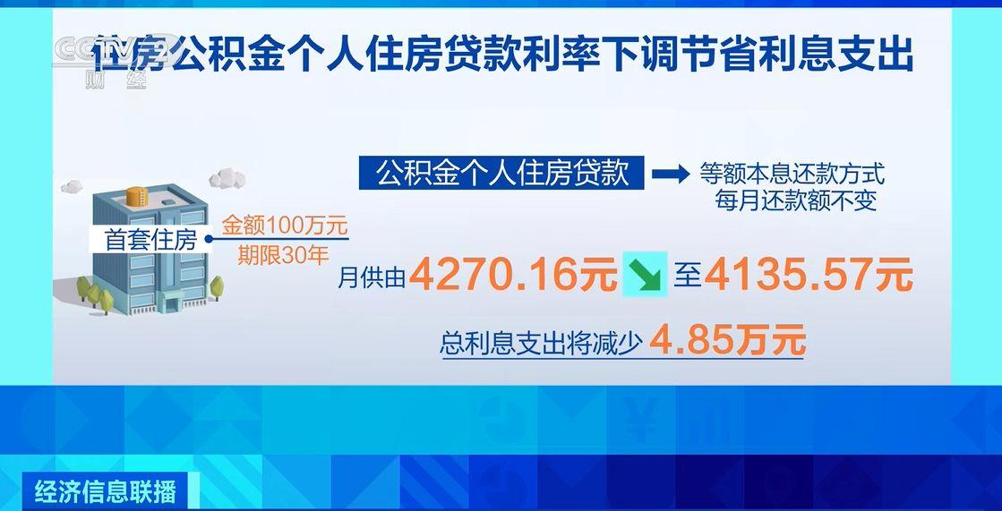 以一筆金額100萬元、期限30年的首套住房公積金個(gè)人住房貸款為例,選擇等額本息還款方式,也就是每月還款額不變的情況下,月供將由4270.16元降至4135.57元,總利息支出將減少4.85萬元。