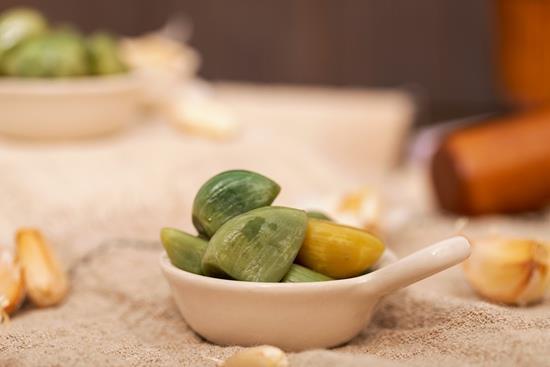 在華北、東北過(guò)臘八的時(shí)候少不了臘八蒜。趕在臘八前后,超市中隨處可見(jiàn)拎著醋,買(mǎi)著蒜的人們。別看只是簡(jiǎn)單的材料,經(jīng)過(guò)兩周左右的時(shí)間發(fā)酵,白胖的大蒜就能搖身一變,成了顏色翠綠的臘八蒜。做好的臘八蒜酸中帶著微微辣,咬一口嘎嘣脆,過(guò)年吃餃子的時(shí)候來(lái)一顆,很是一絕。