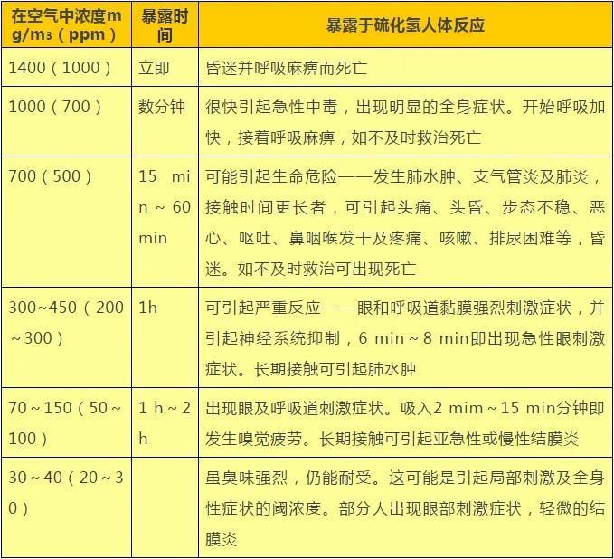 當(dāng)空氣中含有0.02%的硫化氫時,吸入5至8分鐘即可引起中毒; 達(dá)到0.1%至0.15%時,短時間內(nèi)可致死。