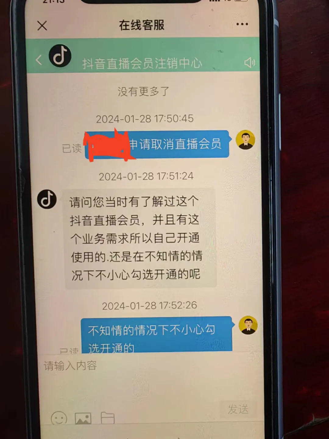 當對方說出這些信息后,王女士頓時愣住了,隨即詢問"客服"如何取消該服務(wù)。客服則指導她添加"抖音直播會員注銷中心"賬號,進行線上關(guān)閉。