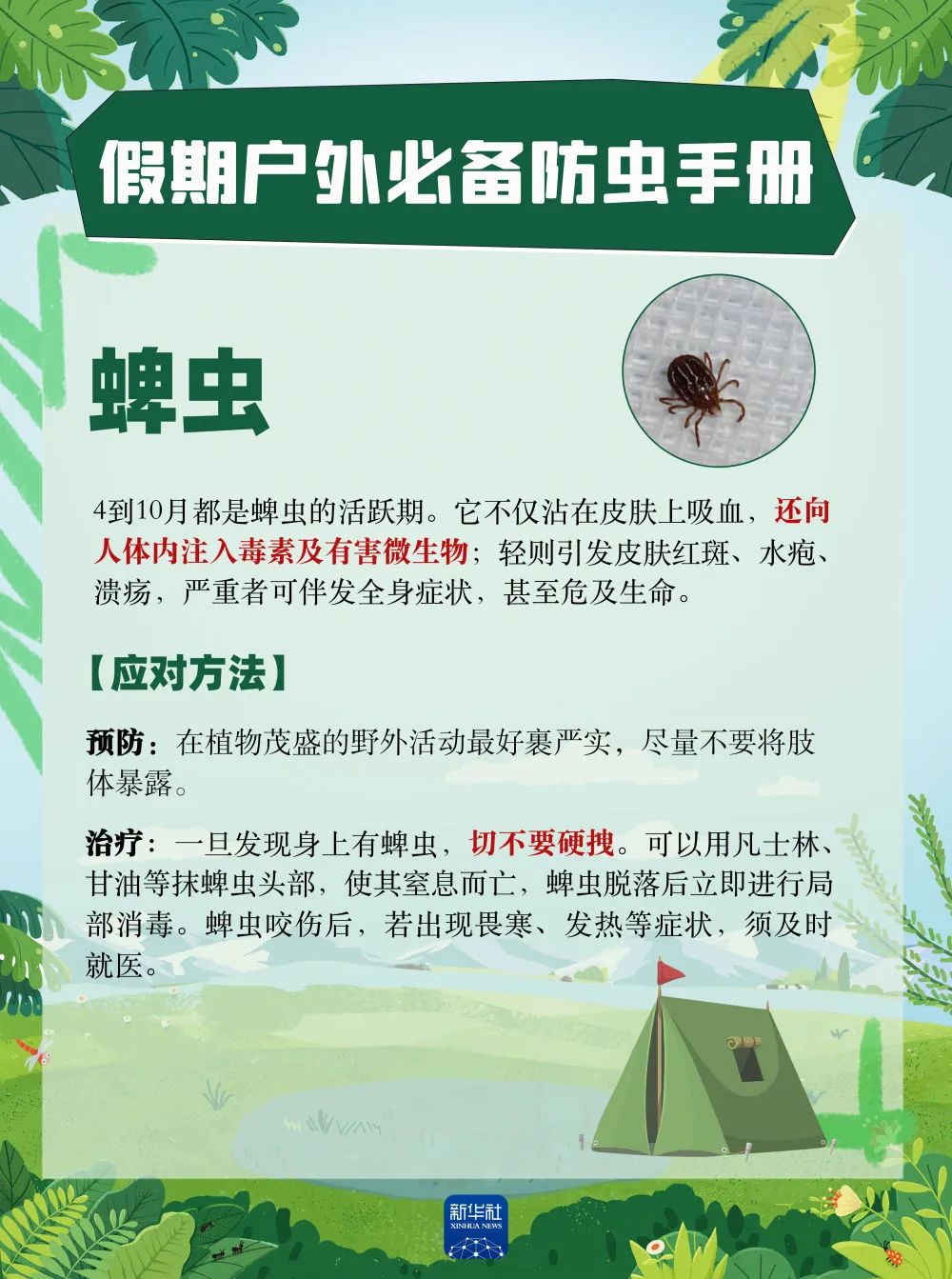 “五一”假期,不少人選擇走出家門,在大自然中擁抱美好時(shí)光?鞓酚瓮娴耐瑫r(shí),也要警惕草叢、樹林、海邊等地蠢蠢欲動的“微型刺客”。戶外游玩期間,如何預(yù)防蚊蟲?記者采訪廣州市皮膚病醫(yī)院主任醫(yī)師羅光浦,為大家準(zhǔn)備了戶外必備的“防蟲手冊”。