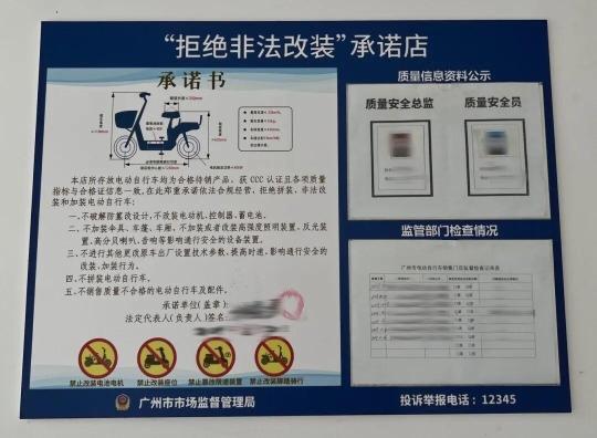 在檢查電動自行車銷售門店經(jīng)營情況方面,廣州市場監(jiān)管部門查資質(zhì)公示,核驗門店營業(yè)執(zhí)照是否有效,檢查是否醒目公示“拒絕非法改裝”承諾等;查產(chǎn)品合規(guī),核對車輛CCC認(rèn)證標(biāo)志及產(chǎn)品合格證有效性,攜帶臺秤、尺具現(xiàn)場核查整車重量、尺寸,比對整車編碼、電動機(jī)、蓄電池、控制器、充電器等關(guān)鍵信息與合格證信息一致性;查非法改裝,對照合格證簡圖核查車輛外觀,排查破解限速裝置、改裝電動機(jī)、控制器、蓄電池等違規(guī)行為;查規(guī)范管理,督促門店落實進(jìn)貨查驗、索證索票、臺賬管理,規(guī)范“一車一池一充”陳列要求。