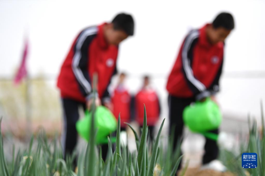 4月10日,學(xué)生在河北省張家口市懷來縣桑園中學(xué)勞動(dòng)實(shí)踐基地里體驗(yàn)農(nóng)耕。