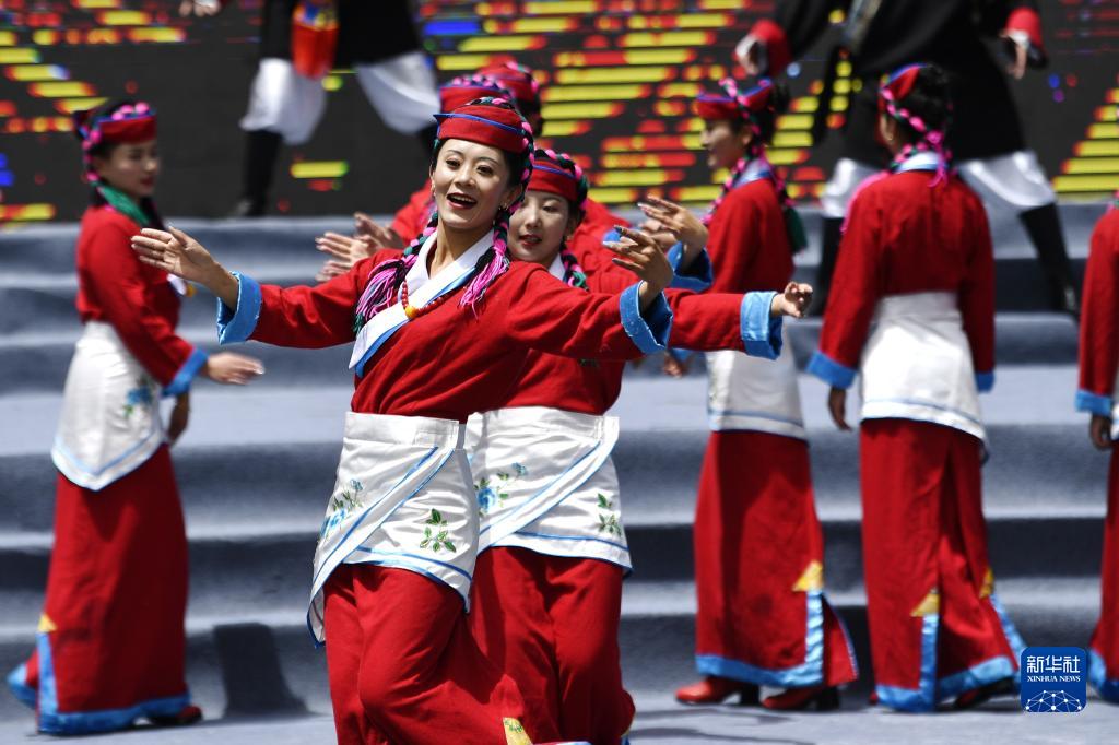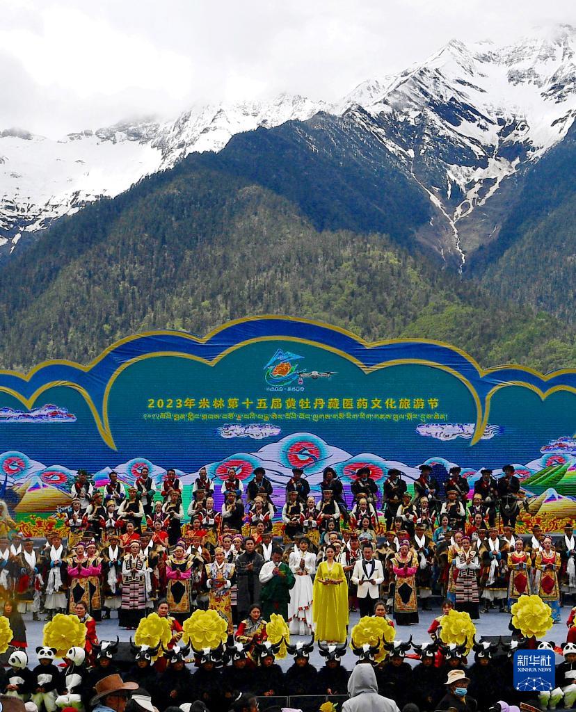 5月28日拍攝的米林市第十五屆黃牡丹藏醫(yī)藥文化旅游節(jié)開幕式現(xiàn)場(chǎng)。