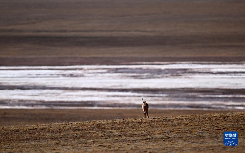 5月28日,一只藏羚羊在青海省玉樹藏族自治州境內(nèi)的草原上活動。