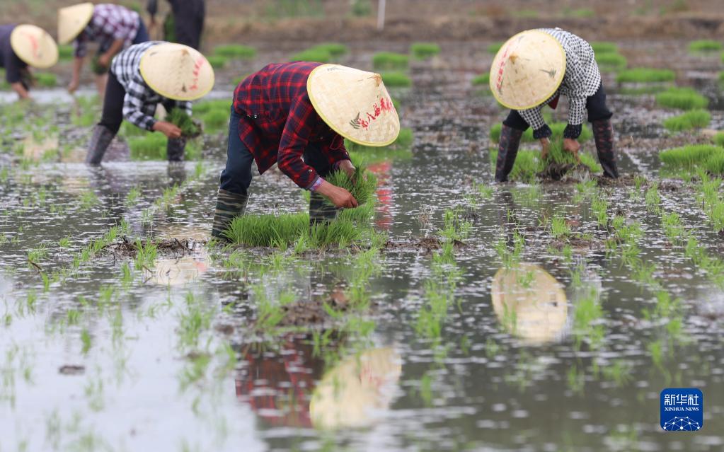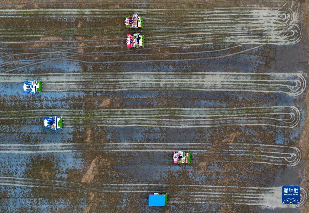 當(dāng)日,江蘇省淮安市洪澤區(qū)岔河鎮(zhèn)舉行第八屆禾采插秧節(jié)活動(dòng),村民和游客在稻田里體驗(yàn)農(nóng)耕樂趣,感受田園生活。