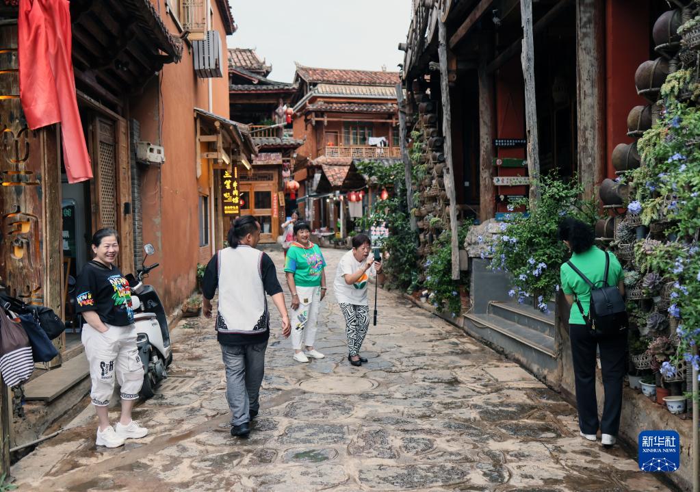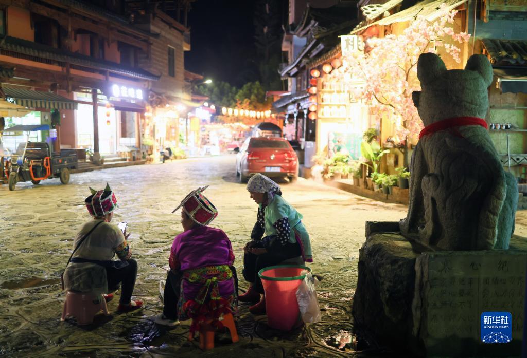 5月30日,在普者黑景區(qū)仙人洞村,村民在街頭聊天。