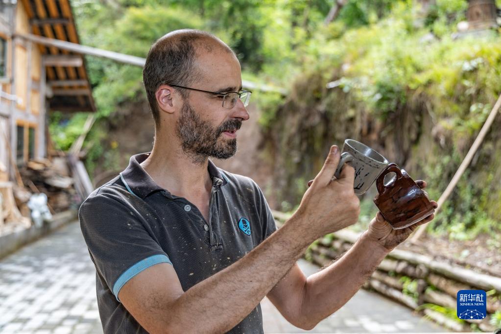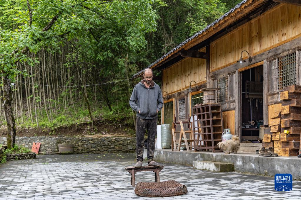 5月29日,在重慶市城口縣北屏鄉(xiāng)松柏村,文森·漆在自己的工作室外。