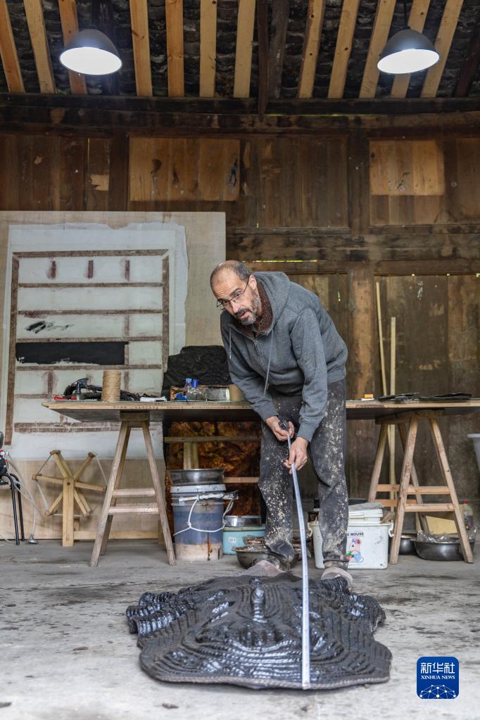 5月29日,在重慶市城口縣北屏鄉(xiāng)松柏村,文森·漆在工作室進(jìn)行創(chuàng)作。