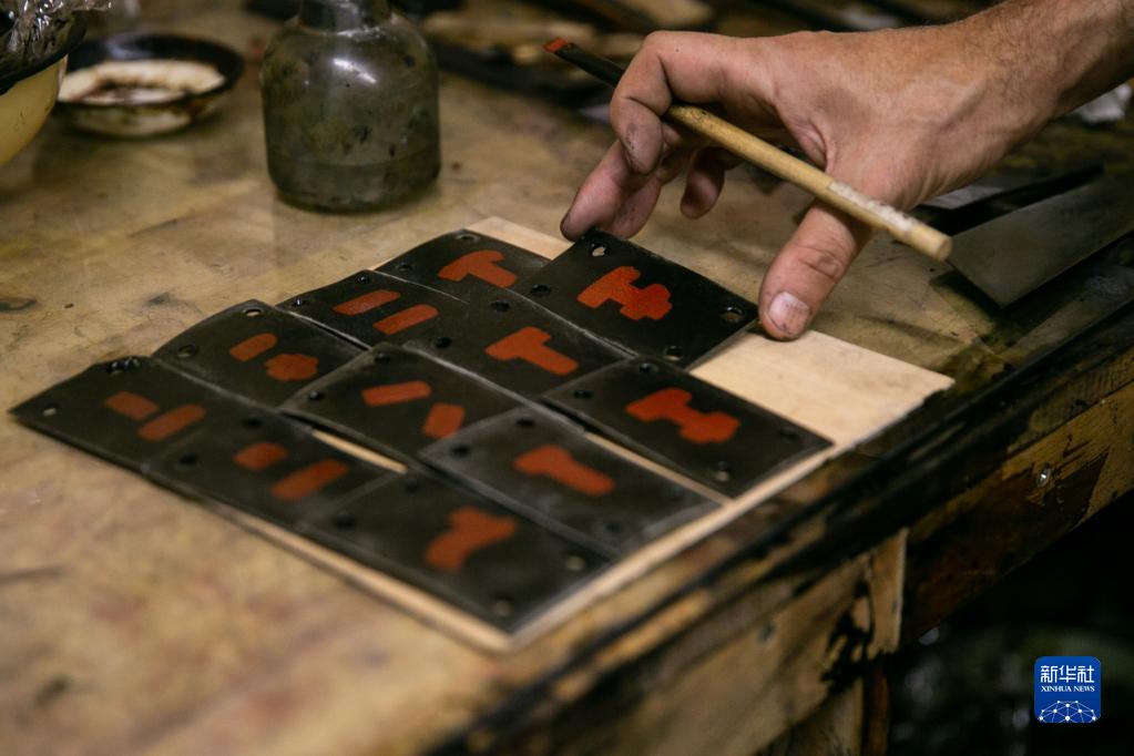 5月29日,在重慶市城口縣北屏鄉(xiāng)松柏村,文森·漆在工作室外查看拋光后的漆器。