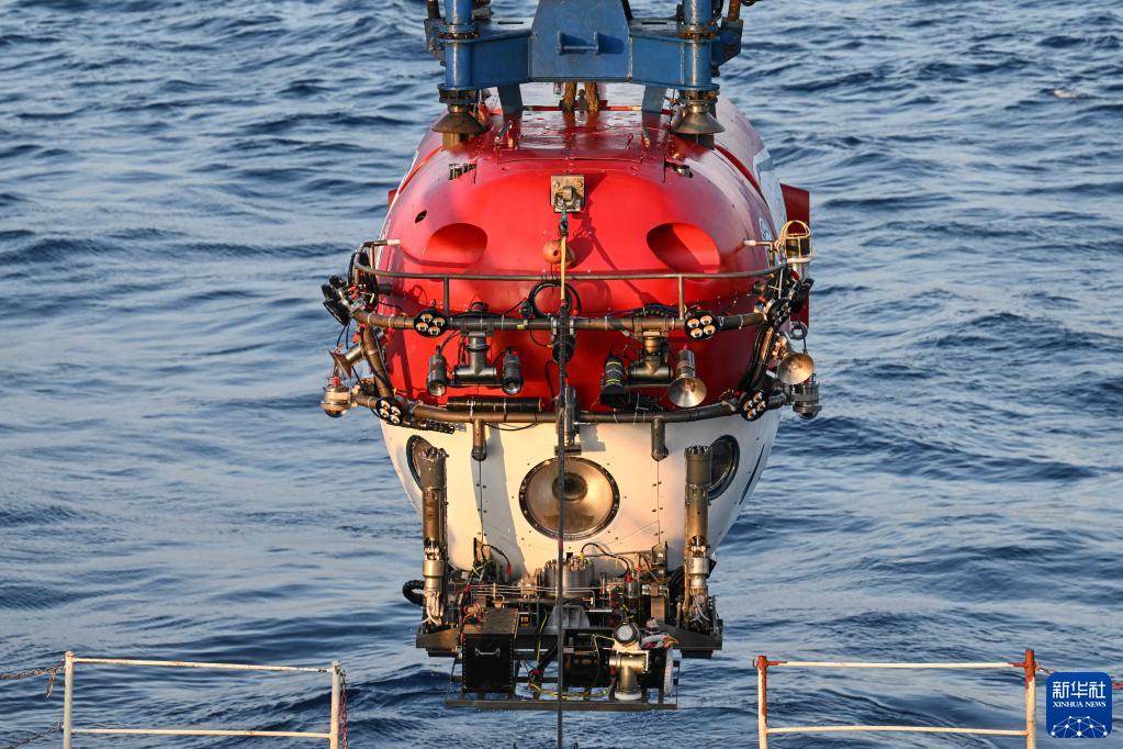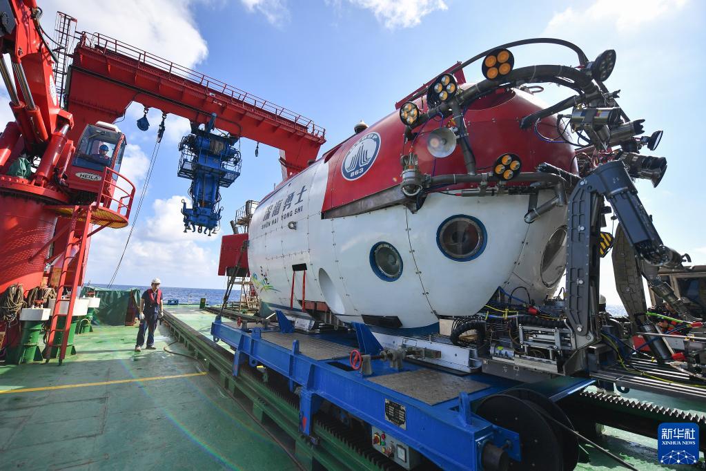 這是在“探索一號”科考船上拍攝的“深海勇士”號載人潛水器,該潛水器用于水下考古數(shù)據(jù)采集(5月26日攝)。