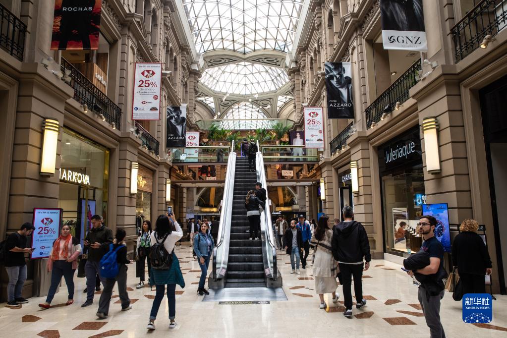6月9日,人們在阿根廷首都布宜諾斯艾利斯佛羅里達大街上的一座購物中心內游覽。