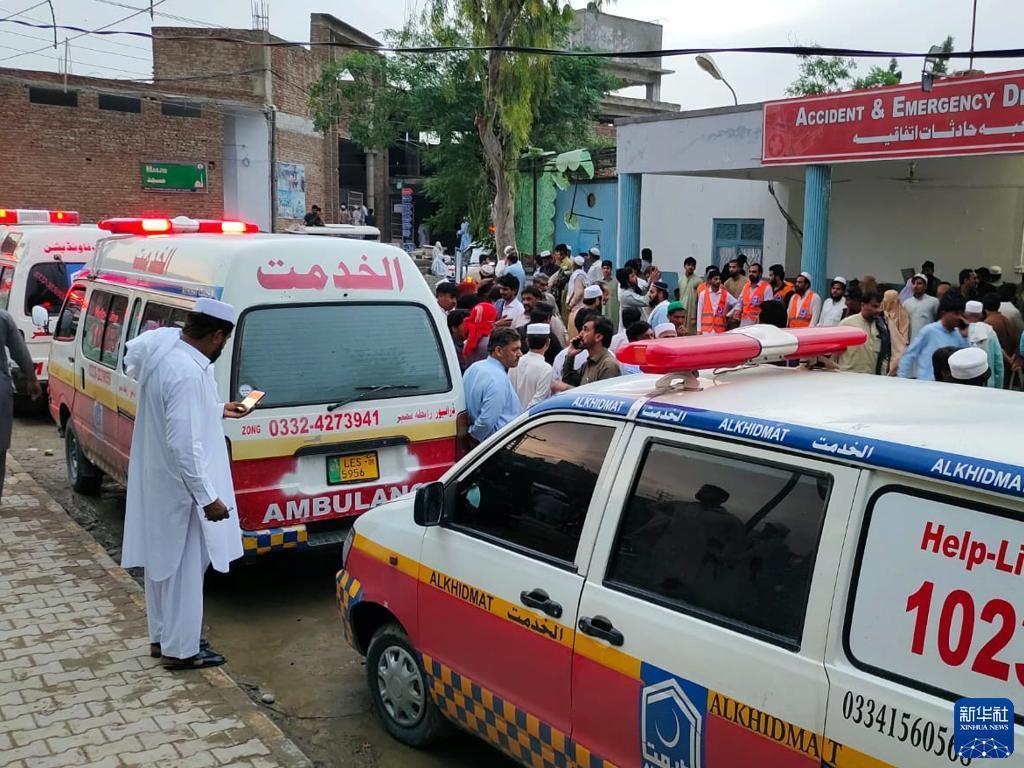 6月10日,載有傷者的救護(hù)車停在巴基斯坦本努地區(qū)一家醫(yī)院外(手機(jī)照片)。